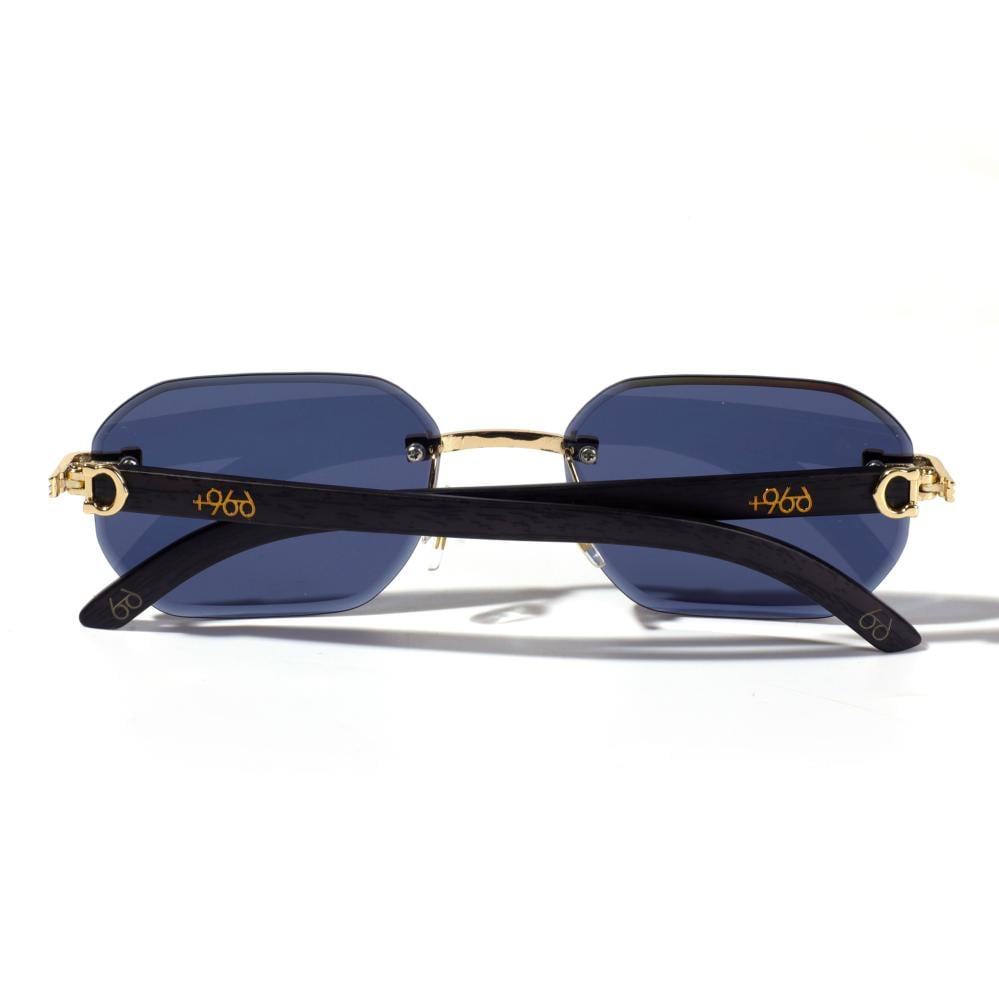 الإطار خشبي بلون أسود مزرق يعكس عمق الليل وفخامته، وعدسات سوداء متدرجة تضيف لمسة غامضة ومميزة، مع حماية UV-400 لعينيك من الأشعة الضارة.