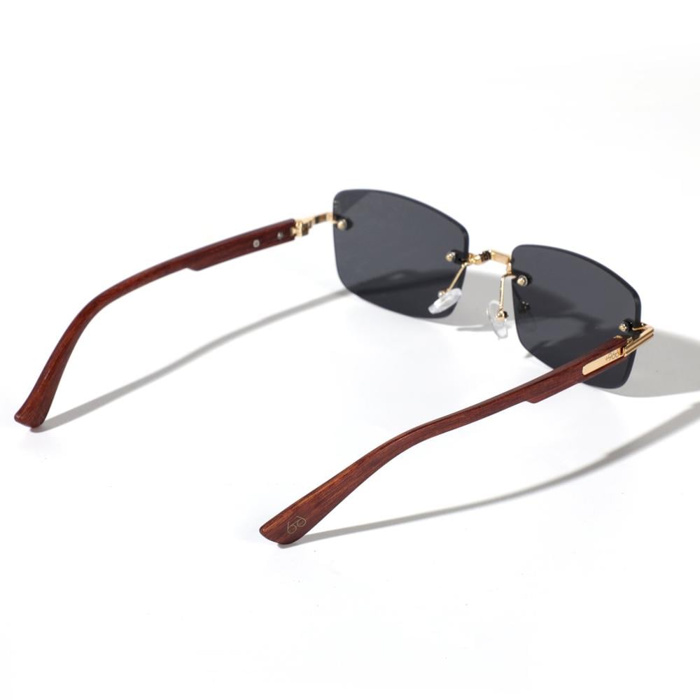 الإطار الخشبي بلون داكن يضفي طابعًا فخمًا وأنيقًا، بينما العدسات السوداء تضيف لمسة من الغموض والحماية، مع حماية UV-400 لعينيك ضد الأشعة الضارة.